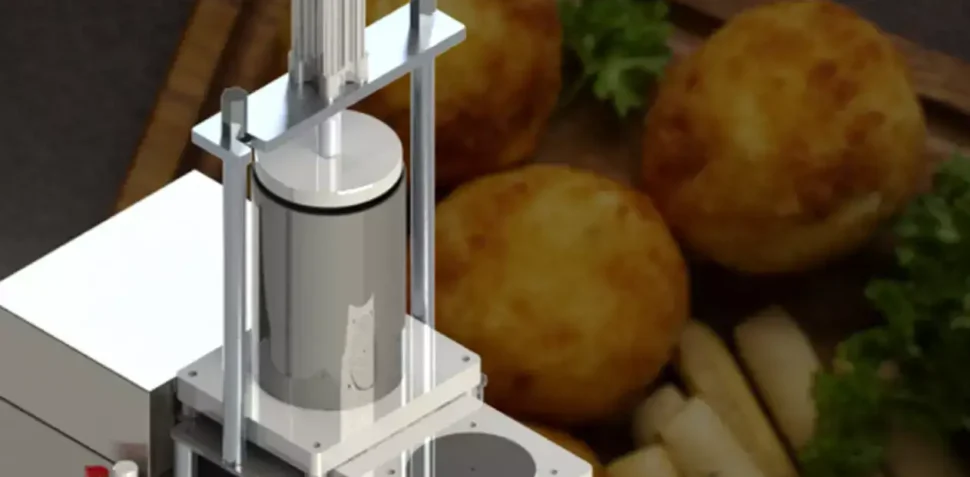 Máquina formadora de pão de queijo fazendo parte da produção de verdadeiras delícias